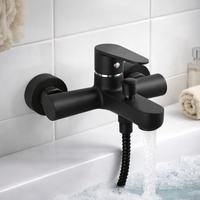Bateria de perete pentru cadă și duș Ferro Algeo Black (BAG1BL) reprezintă o fuziune perfectă între formele clasice, rotunjite și finisajul modern negru mat. Dotată cu un cartuș ceramic fiabil și un sistem de montaj aplicat, această baterie monocomandă aduce un contrast vizual elegant în orice baie, oferind în același timp o ergonomie excelentă datorită formei specifice a manetei.