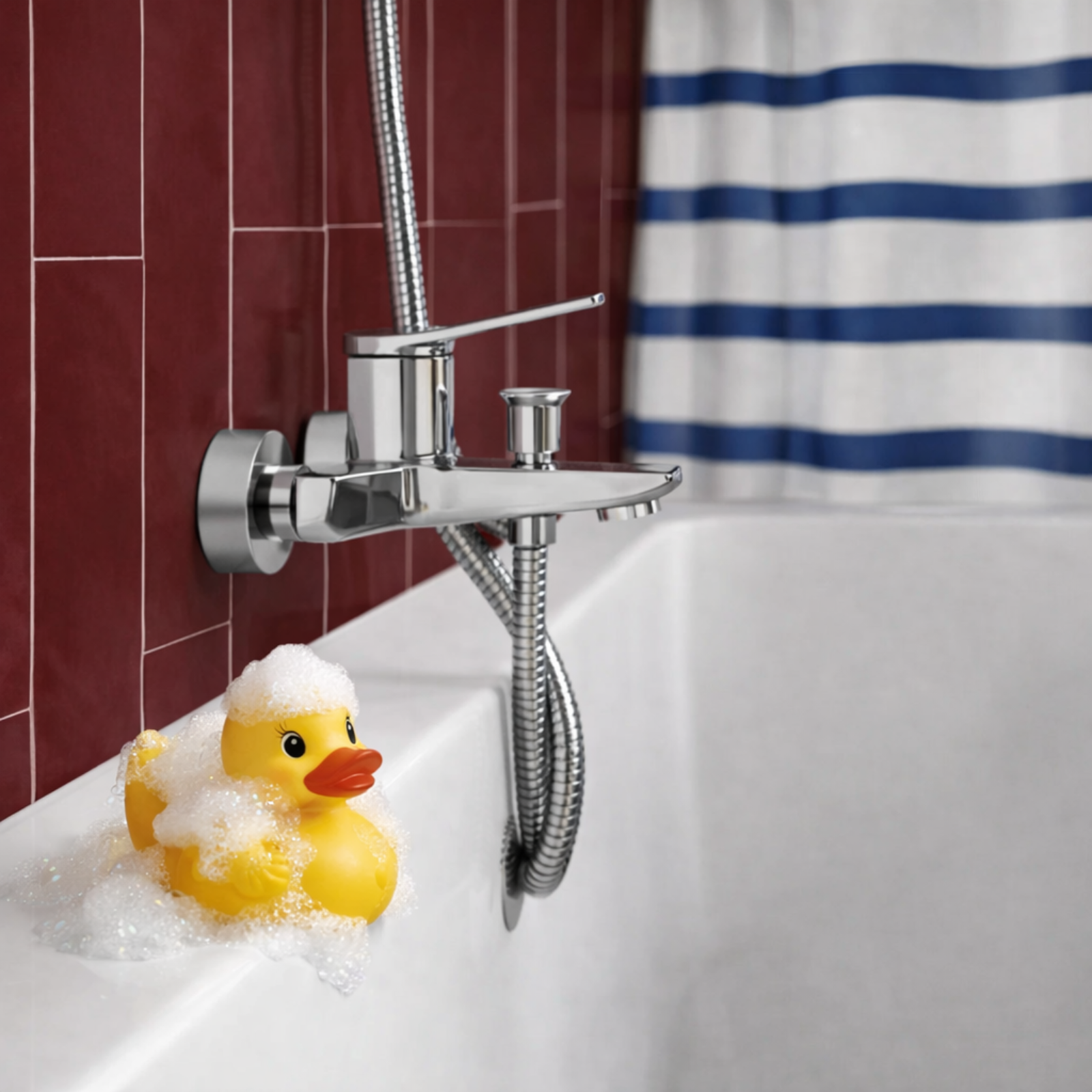 Datorită construcției solide din alamă, această baterie este proiectată să reziste la coroziune și la utilizare intensă. Comutatorul automat permite trecerea rapidă de la funcția de umplere a căzii la duș, oferind o experiență de utilizare intuitivă. Finisajul cromat lucios este ușor de întreținut și își păstrează strălucirea timp îndelungat, fiind rezistent la zgârieturi și pete.