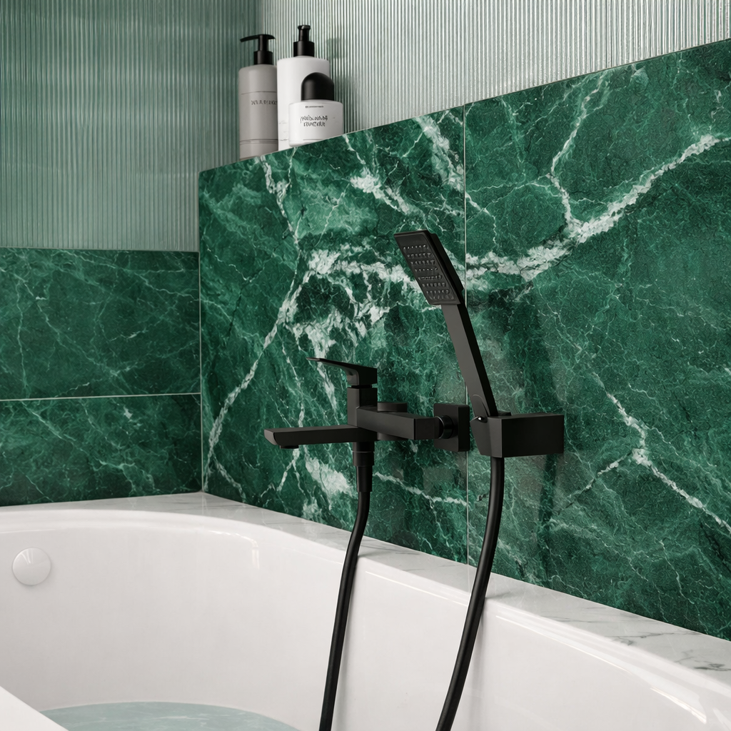 Bateria de perete pentru cadă și duș Ferro Vitto VerdeLine BVI1RVLBL este o piesă de design modern, definită prin finisajul sofisticat negru mat și tehnologia avansată pentru economisirea apei. Această baterie monocomandă combină estetica minimalistă cu funcționalitatea ecologică, fiind dotată cu sistemul VerdeLine care reduce consumul de apă fără a diminua confortul jetului.