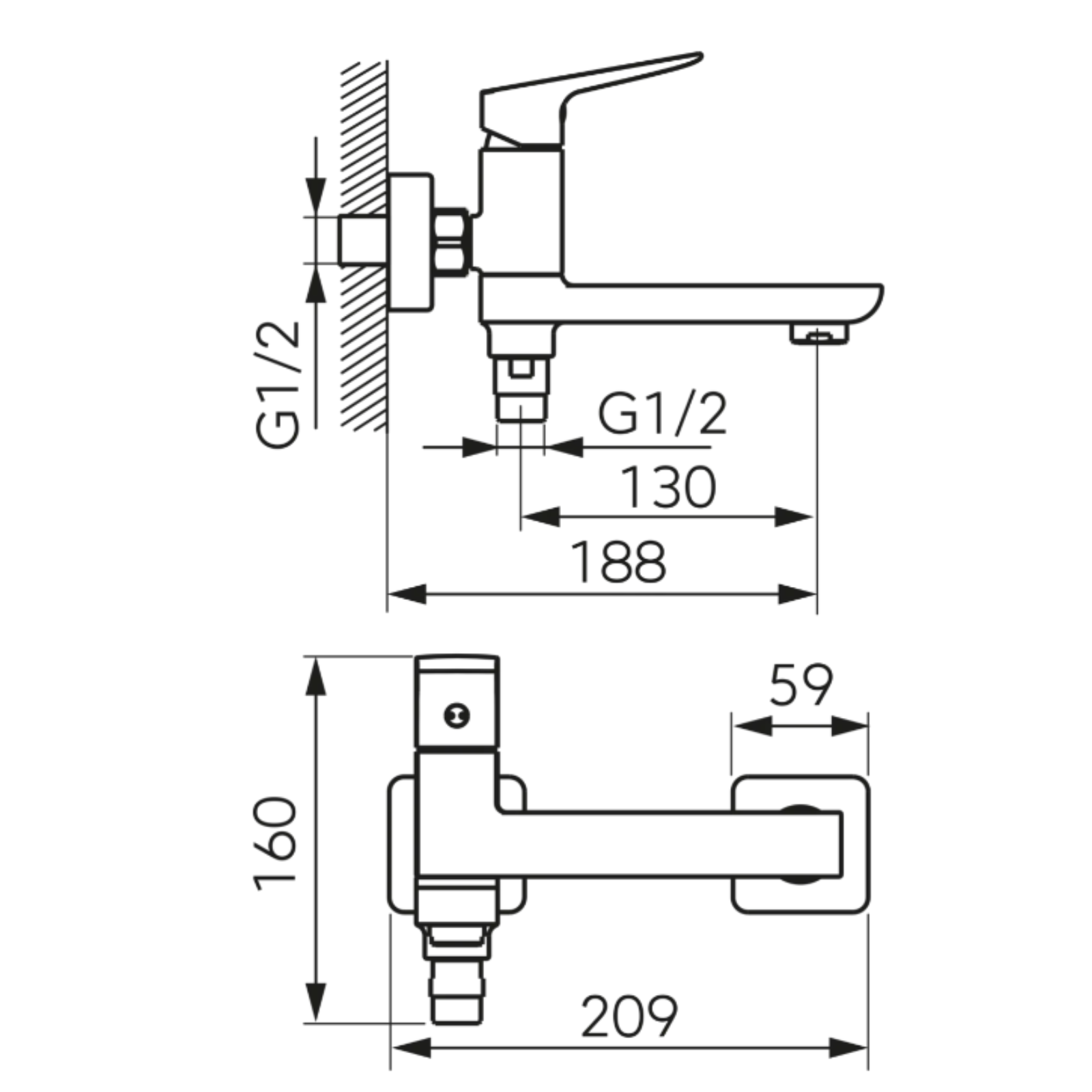 • Montaj: Pe perete, distanță excentrice 150 ± 20 mm