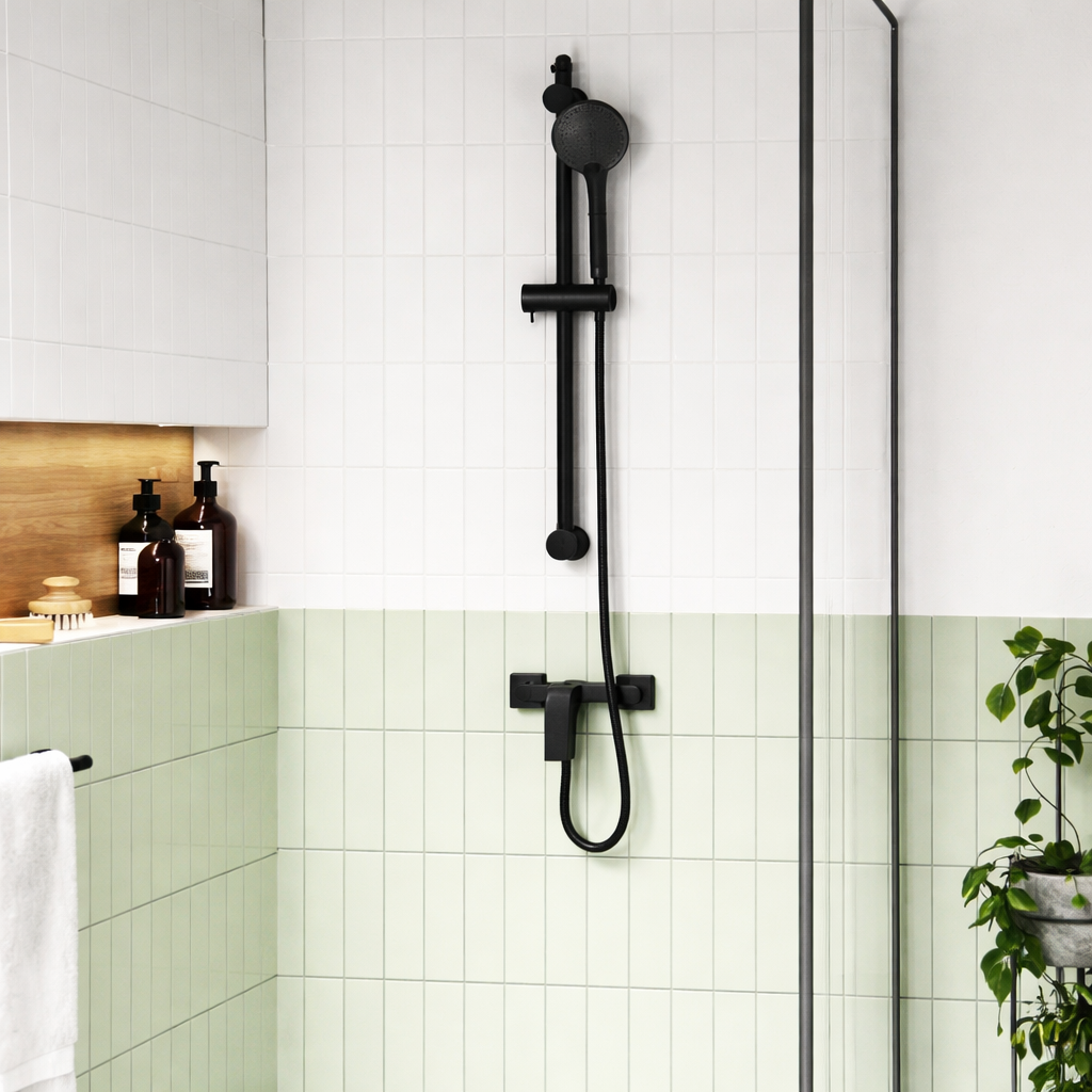 Completează designul cabinei tale de duș cu bateria Ferro Vitto VerdeLine Black. Acest model monocomandă elimină elementele inutile, concentrându-se pe o estetică "curată" și o funcționalitate impecabilă. Finisajul negru mat adaugă un contrast puternic și elegant în băile placate cu gresie tip marmură, beton sau alb mat.