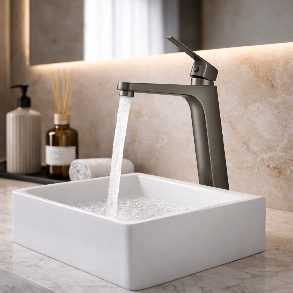 Design Premium: Model înalt (296 mm), ideal pentru lavoarele tip bol așezate pe blat.