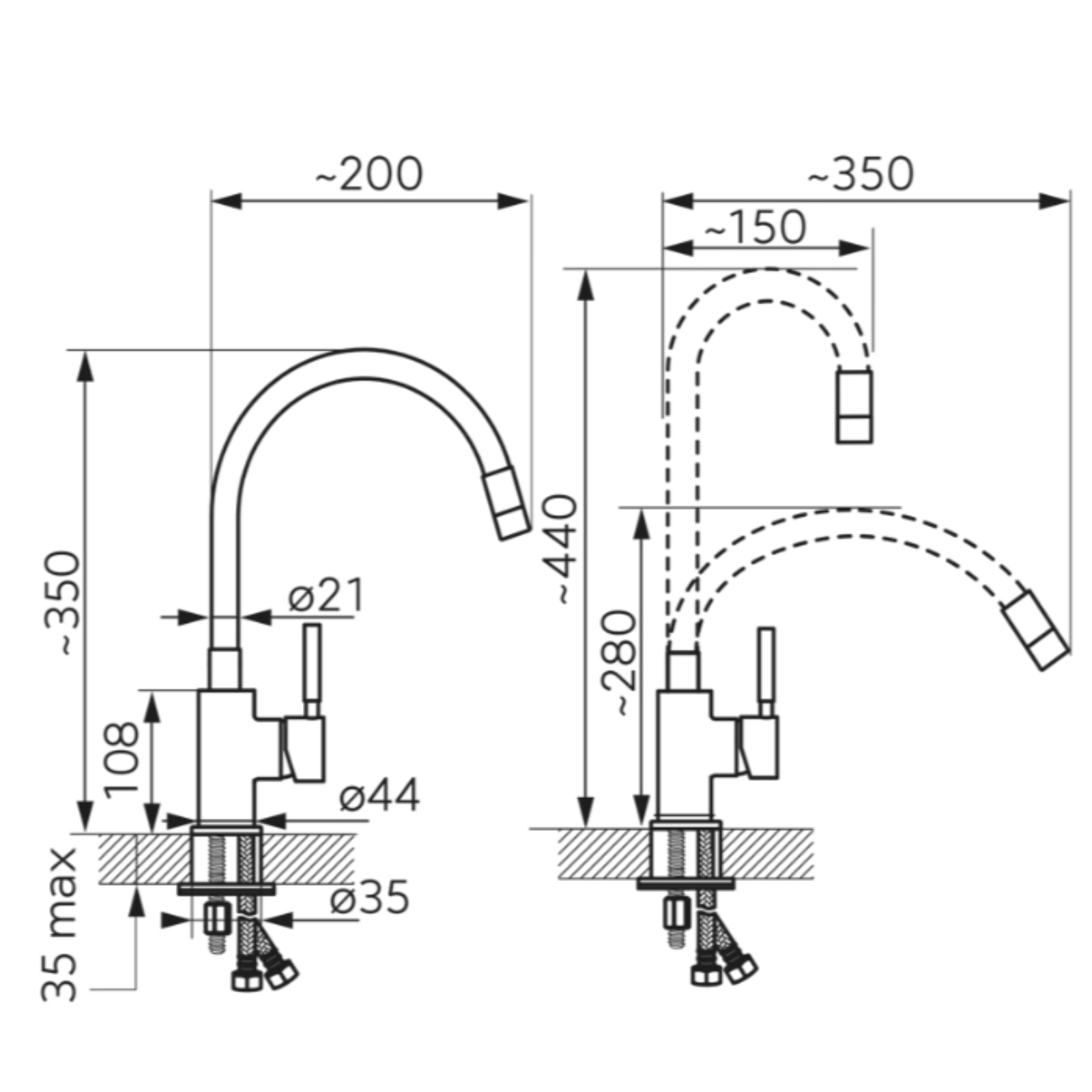 • Rază de Acțiune: Proiecția pipei poate fi ajustată între 150 mm și 350 mm.